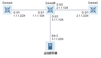 DeviceB(config-if-GigabitEthernet 0/1)# ip address 2.1.1.1 255.255.255.0